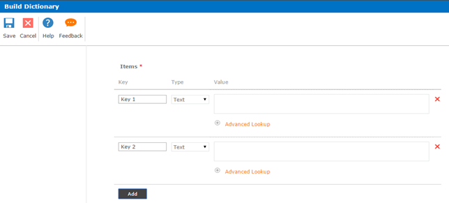 Using this action you can add items to build a dictionary. Let’s see the implementation of this functionality.