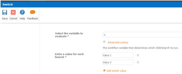 Select the variable to evaluate: Here you have to assign a value which the switch should pick up and validate with the two values, value 1 & 2.