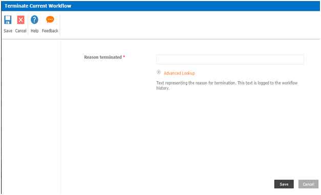 Reason Terminated: You have to provide a reason for this termination which will be logged when the workflow is terminated.
