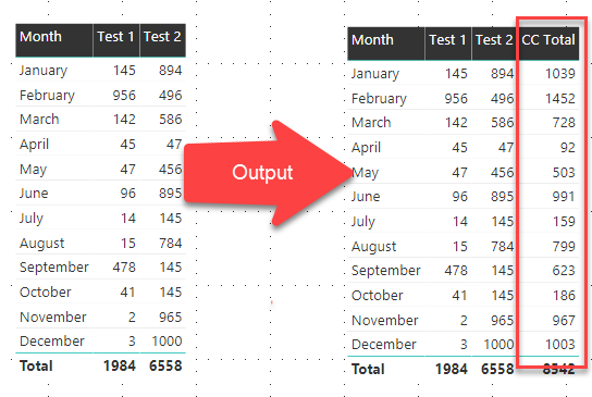 CC Total = Sheet1[Test 1 ] + Sheet1[Test 2]