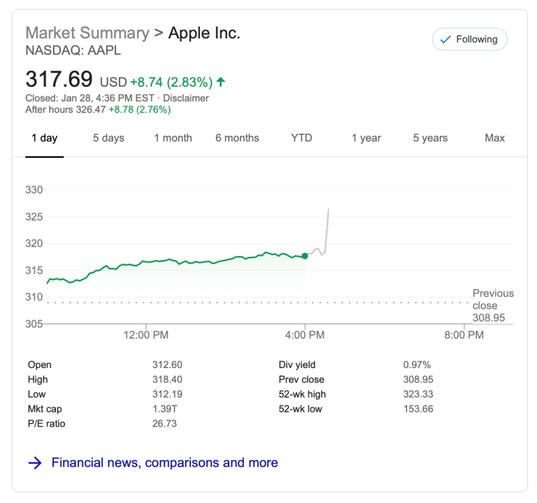 AAPL is up nearly 3% in after-hours trading on the news: