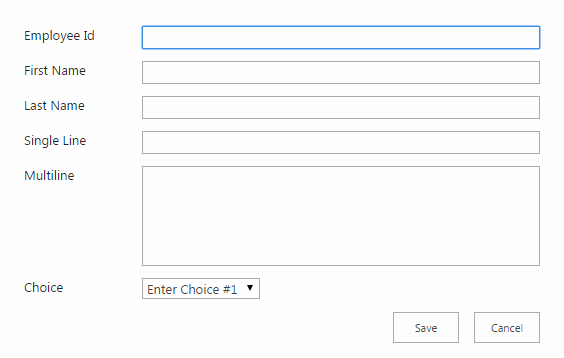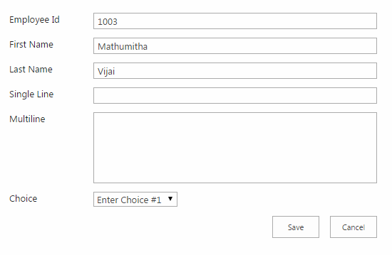 When the user enters the Employee Id value into the Child list form it should query the values from the Parent list and populate the “First Name” and “Last Name” as shown below.
