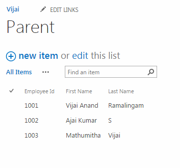 Click on the new item link.Enter the Employee Id value and you will to see the values automatically populated from the Parent list as shown below.