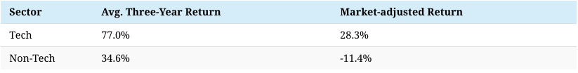 Longer-term analysis from the University of Florida’s Warrington College of Business shows that U.S. tech IPOs offer better returns than other sectors as long as investors get in at the offer price.
