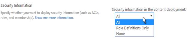 Here, you can specify if you want to deploy the security information like Role Definitions or ACLs, Roles and Membership.