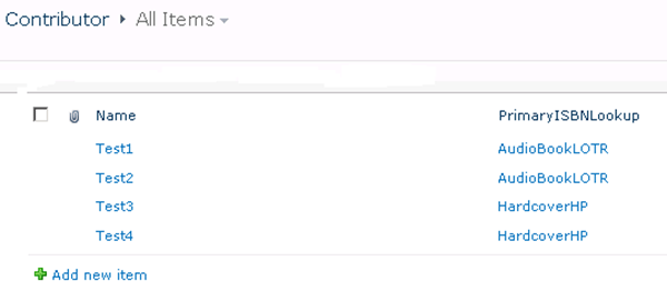 In this section we will be seeing how to obtain the URL for the RSS feed from the SharePoint list. I have a SharePoint list called "Contributor" which has the following items.
