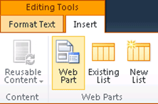 In the ribbon interface go to Editing Tools => Insert => Web Part.