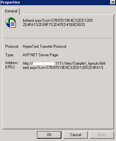 Go to the properties and copy the "URL" of the RSS feed.