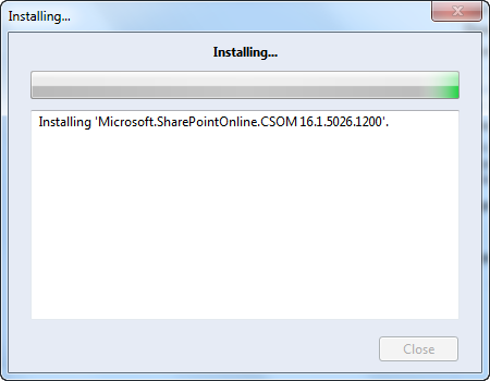 5. Search for Microsoft.SharePointOnline.CSOM and then click on Install.