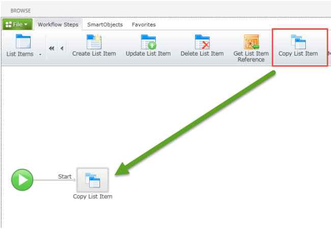 Go to K2 designer, drag and drop a Copy List Item step from the List Item workflow steps in the ribbon interface.