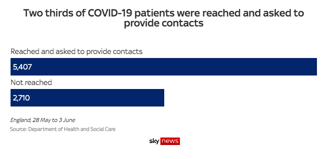 One third of people who tested positive for coronavirus could not be reached by the government's contact tracing system, or refused to hand over their contacts.