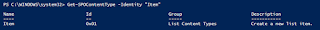 Add-SPOContentType command is used to create the site content types on SharePoint sites. The required parameters to create the new site content type are name, description and group. The new values can be passed as the parameters. In my example, I have created new site content called "PnPContentType". The default parent content type will be the item.
