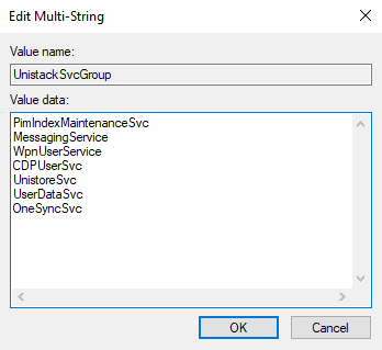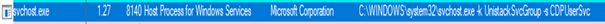 In our example when the “svchost.exe” process used the “-k UnistackSvcGroup”, it’ll look inside the registry and find the corresponding value (on my machine).