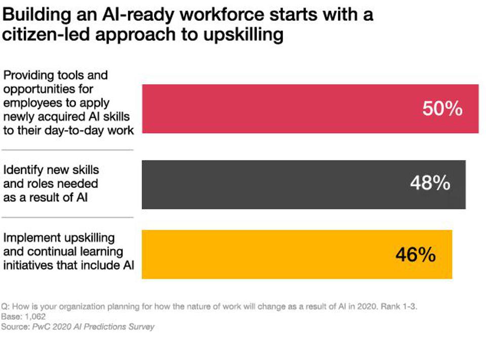In the next five years, half of all workers will require some upskilling or reskilling to prepare for changing and new jobs, according to the World Economic Forum. The rapid pace of technological change requires new models for training that prepare employees for an AI-based future. True upskilling requires a citizen-led approach focused on applying new knowledge to develop an AI-ready mindset. Employers should view upskilling and reskilling as an investment in the future of their organization, not an expense.