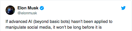 Musk has previously warned about the potential for bots with artificial intelligence to be used to “manipulate social media.” And with more than 30 million followers, it’s likely he’s seen a fair number of phony accounts. Less than four months after Musk tweeted that warning, the replies are littered with “unavailable” messages and suspended accounts.
