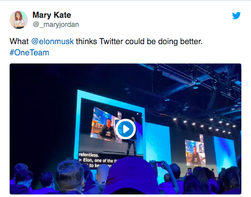 In a video from the event tweeted by a Twitter employee, Twitter CEO Jack Dorsey asked Musk for feedback — and jokingly offered to let him run the company.