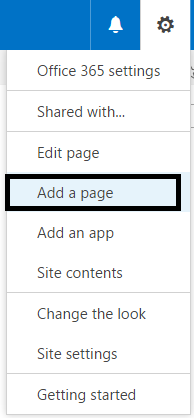 b. Go the gear icon and click on Add a page.