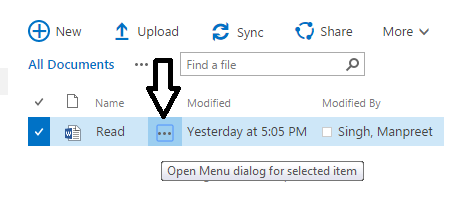 Click on the Menu dialog option for the selected word document.