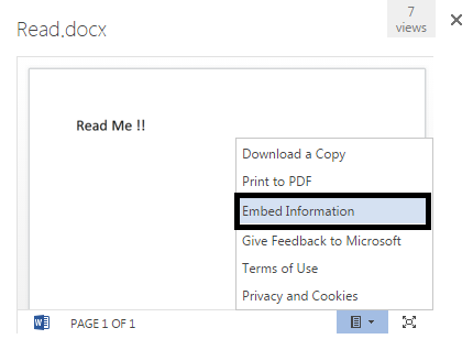 You will see a pop-up as per the screen below with an option, “Embed Information”.