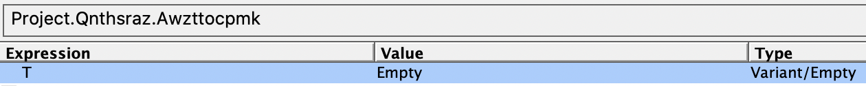 Now, we must find Dzzebvtpbu variable, but it is uninitialized.
