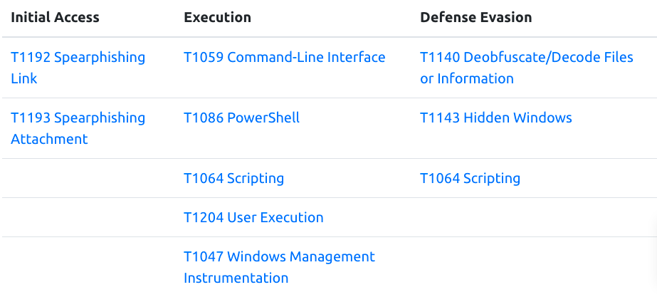The most common entry vector of Emotet is spearphishing emails. The MITRE ATT&CK Framework classifies spearphishing techniques into Spearphishing Attachment ( MITRE ATT&CK T1193 ), Spearphishing Link ( MITRE ATT&CK T1192 ) and Spearphishing via Service ( MITRE ATT&CK T1194 ). In this Emotet strain, spearphishing emails include links to websites that deliver Microsoft Office Word documents to the user upon clicking the link ( User Execution, MITRE ATT&CK T1024 ). Word documents are not directly attached to emails to avoid defenses that may inspect email attachments ( Spearphishing Link, MITRE ATT&CK T1192 ). They include malicious macros that download Emotet banking malware to the target systems.
