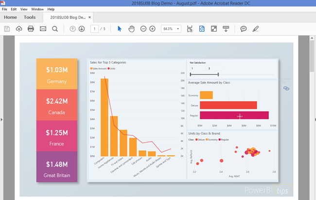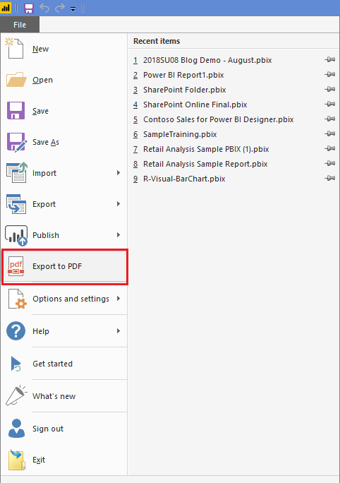 Microsoft has recently released the Export to PDF option for Power BI Desktop. The feature was released in the August 2018 update. If you want to explore this feature, you will need to update your Power BI Desktop.