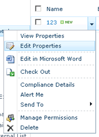 Select the document, click on Edit Properties in the ECB menu.