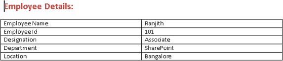 Values for the external data columns will be automatically updated in the word document as shown in the below figure.