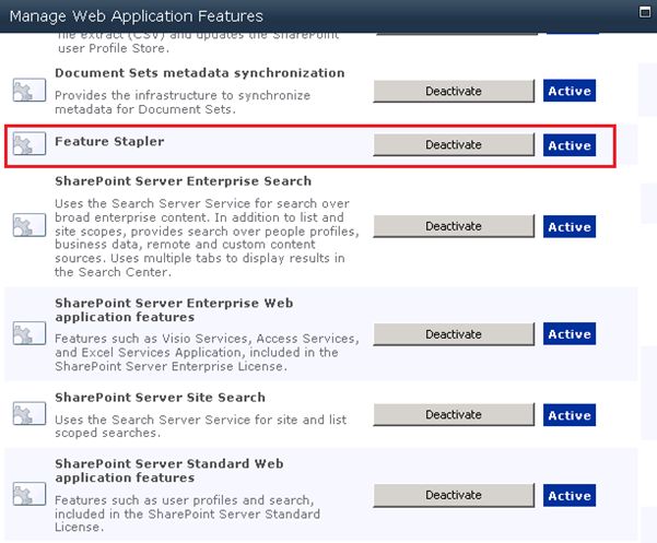 The following is the procedure steps to to implement Feature Stapling in SharePoint: