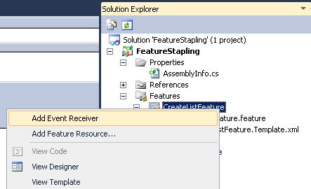 Right-click on CreateListFeature and then click on the Add Event receiver.