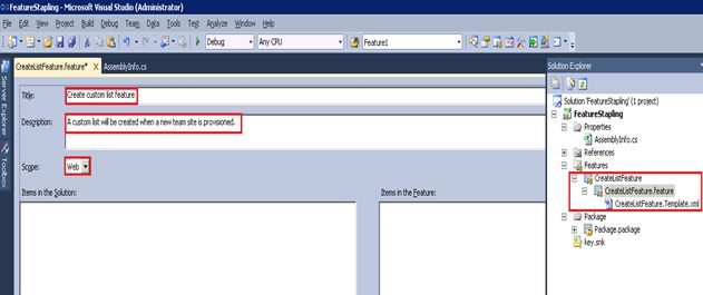 In this section you will see how to create a feature stapler that is used to staple the CreateListFeature to the site definition.