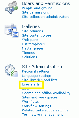 In this article you will see how to get all the alerts from a SharePoint 2010 web site using a web service. In this you will see how to get all the alerts for the particular user from the SharePoint 2010 web site using a web service. Navigate to the SharePoint site. Go to Site Actions, and then click on Site Settings.