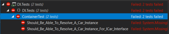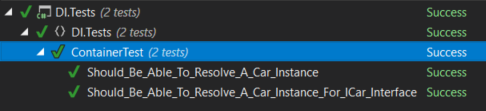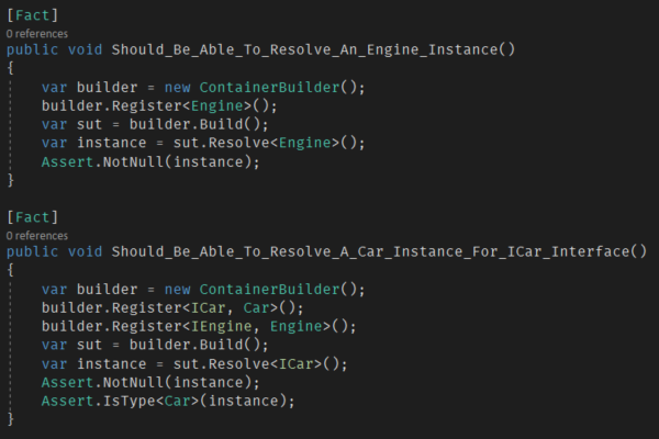 Let’s adjust my Register method so that it supports this feature and write a new unit test to resolve our car based on an interface ICar