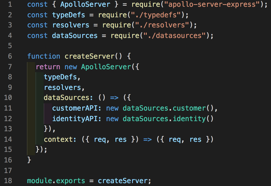 |-- createServer.js - resolvers and typeDefs construct ApolloServer