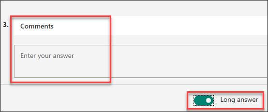 Add the text question and select "Long answer" toggle (multiline text), as shown in the below screenshot.