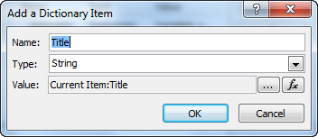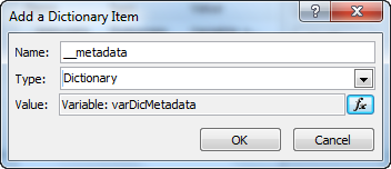 Build Dictionary Action – Add the dictionary items, given below and set to varDicMetadata dictionary variable.