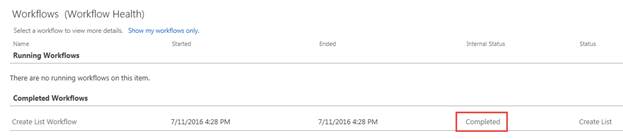 You will be able to see the Workflow history, as shown below. A new list will be created successfully.