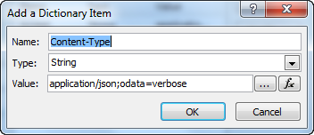 Build Dictionary Action – Add the dictionary items, given below and set to varDicRequestHeaders dictionary variable.
