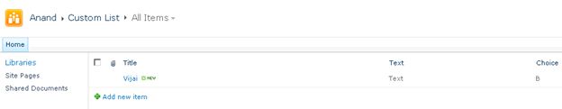 The entire list will be populated from the "Anand" site. Select the "Custom List" where the item is to be created.