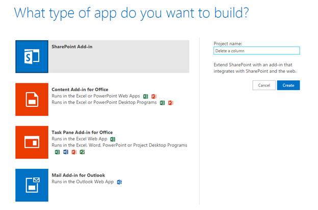Select SharePoint Add-in and provide a name to your app and click on Create.
