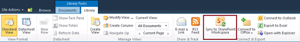 In this article we will be seeing how to enable Sync to SharePoint Workspace button in the ribbon interface for SharePoint document libraries so that the documents can be synced to SharePoint Workspace and the users can work from offline.