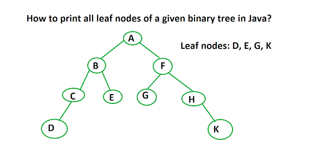 This is another interesting coding problem that is based on a binary tree and mostly asked beginner programmers. If you have some experience in solving binary tree-based problems then it's rather easy to solve because, like many other binary tree algorithms, you can use recursion to print all leaf nodes of a binary tree in Java. Since the tree is a recursive data structure, you can apply the same algorithm to both the left and right subtree. In order to solve this problem, the first thing you should know is what is a leaf node because if you don't know that then you won't be able to solve the problem. Well, a leaf node is the one whose left and right child nodes are null.