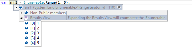 In the above code I want to get all the numbers from 1 to 5. I have used Enumerable.Range(1, 5) to achieve the same