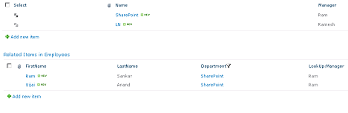 Introduction: List relationships is a new feature in SharePoint 2010. In this article we will be seeing about the inserted related list in SharePoint 2010.