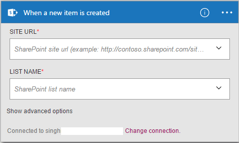 We selected “SharePoint- When a new item is created” as a trigger to our flow.