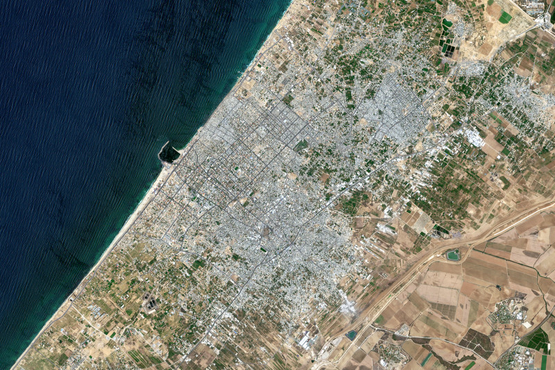 A satellite image shows Gaza City and the Jabalia Refugee Camp in the northern Gaza Strip on July 10, 2018. ORBITAL HORIZON/COPERNICUS SENTINEL DATA 2018/GALLO IMAGES/GETTY IMAGES