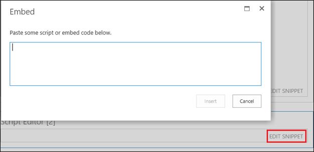 Copy and paste the following code snippet and then click on the Insert button.