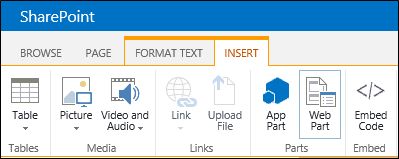 Click on the Insert tab and then click on Web Part.