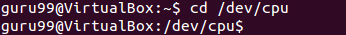 cd ..Here by using the 'cd ..' command, we have moved up one directory from '/dev/cpu' to '/dev'.