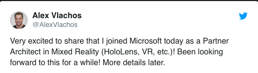 Alex Vlachos worked at Valve for around 13 years before he left in Sept. 2019 and he announced his move to Microsoft today.